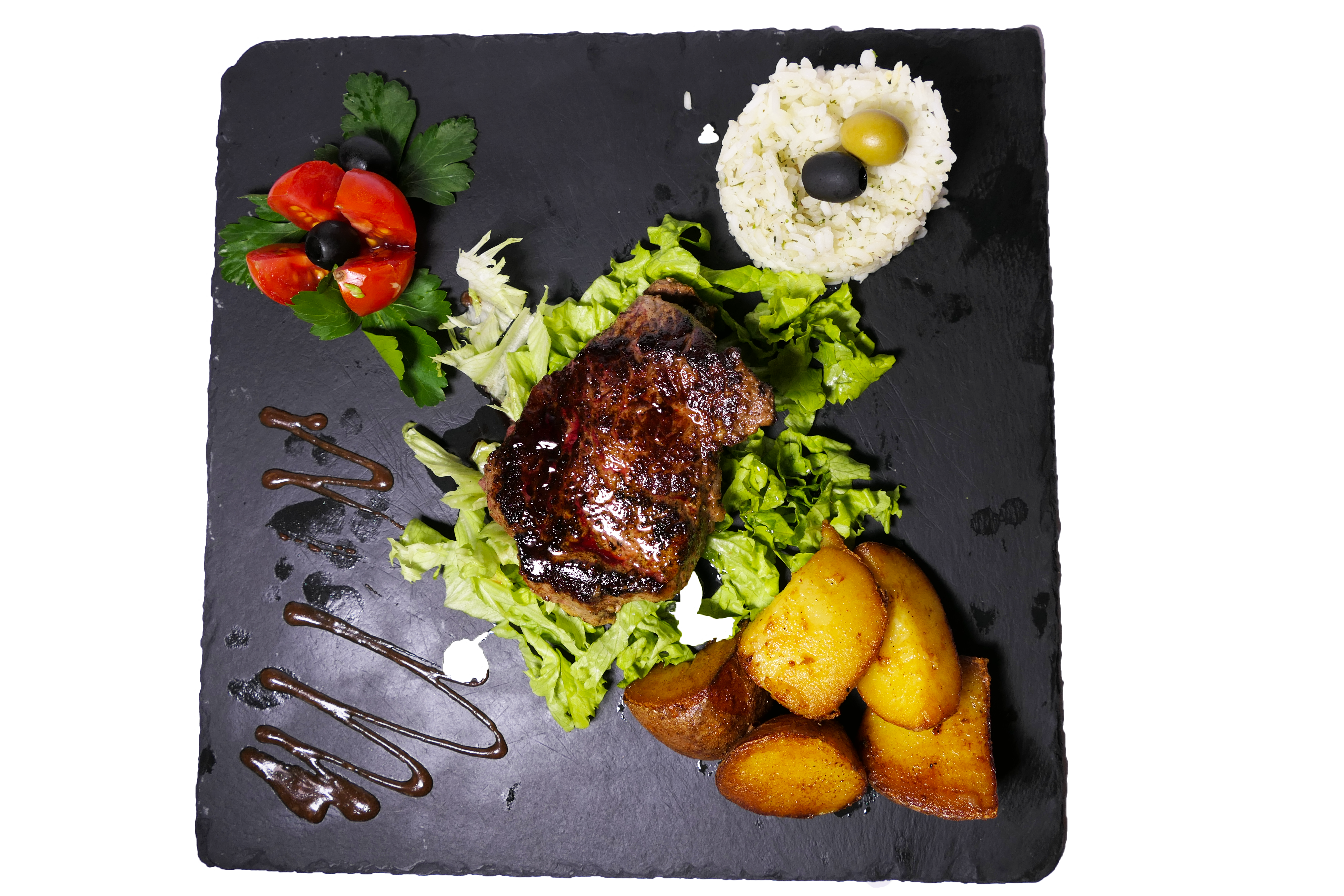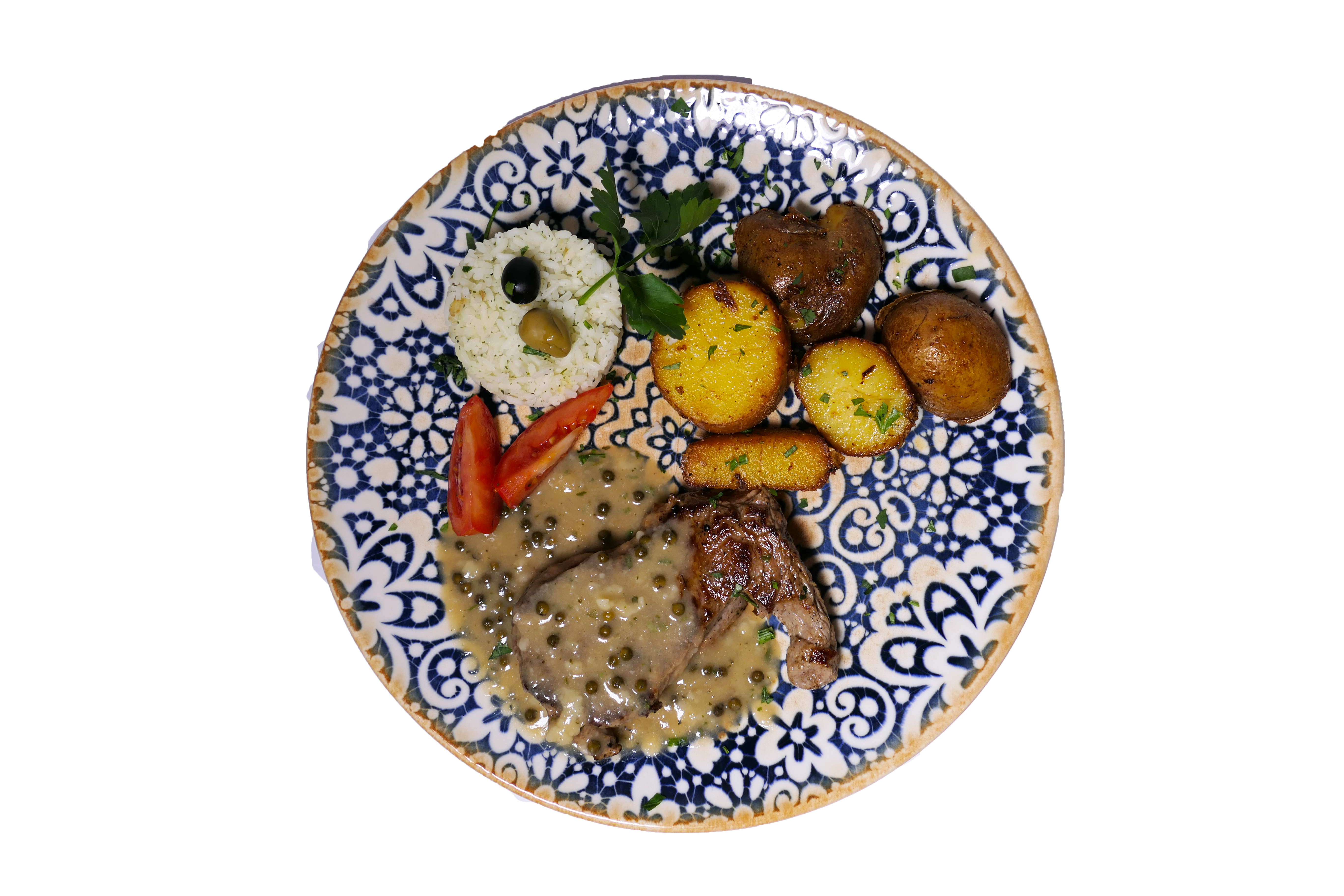 File brancina 250 gr, sos od rukole i kozica na bijelo uz prilog blitve na dalmatinski i kuhanog krompira