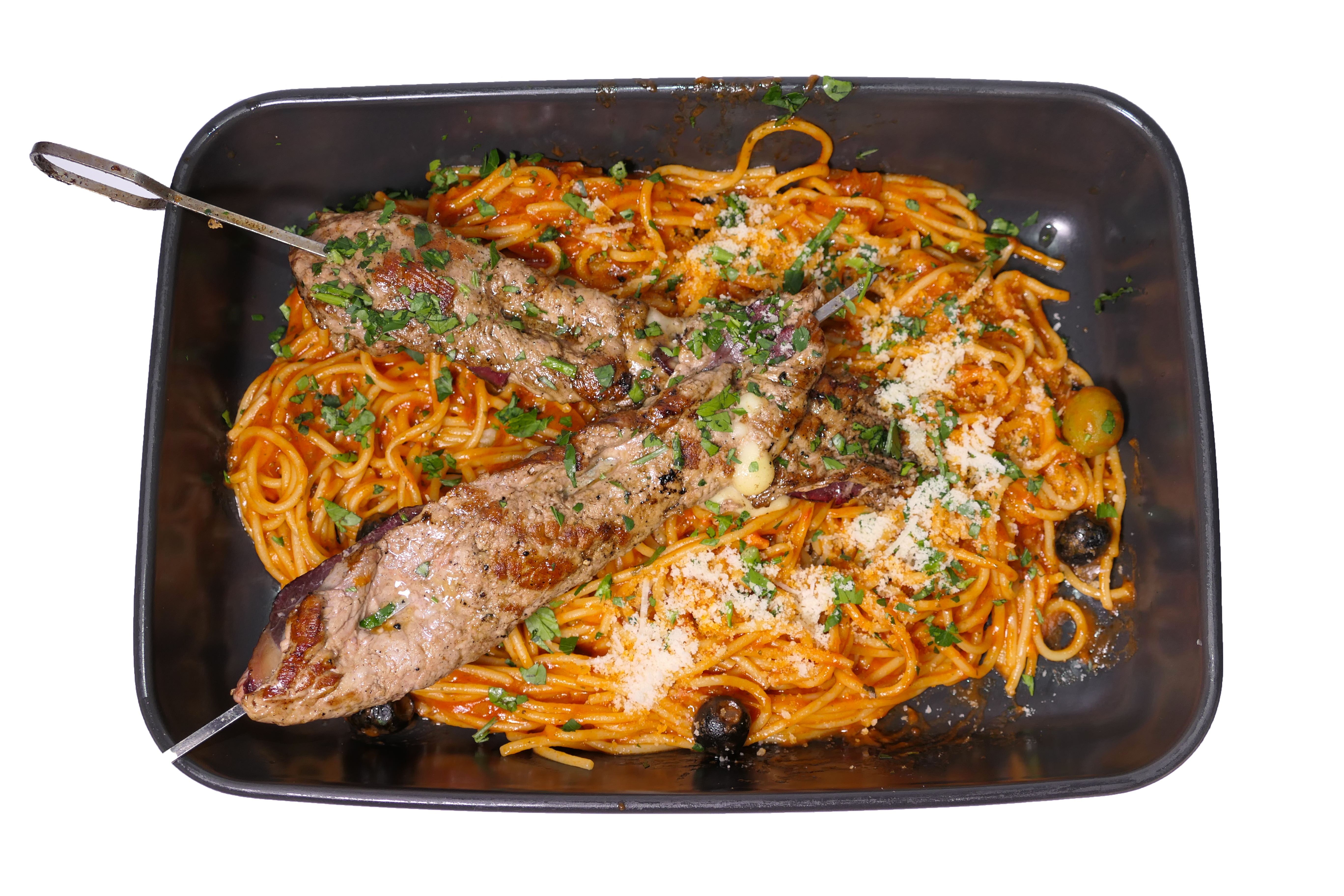Ramstek punjen mozzarellom i suhim mesomna podlozi spagetti paste