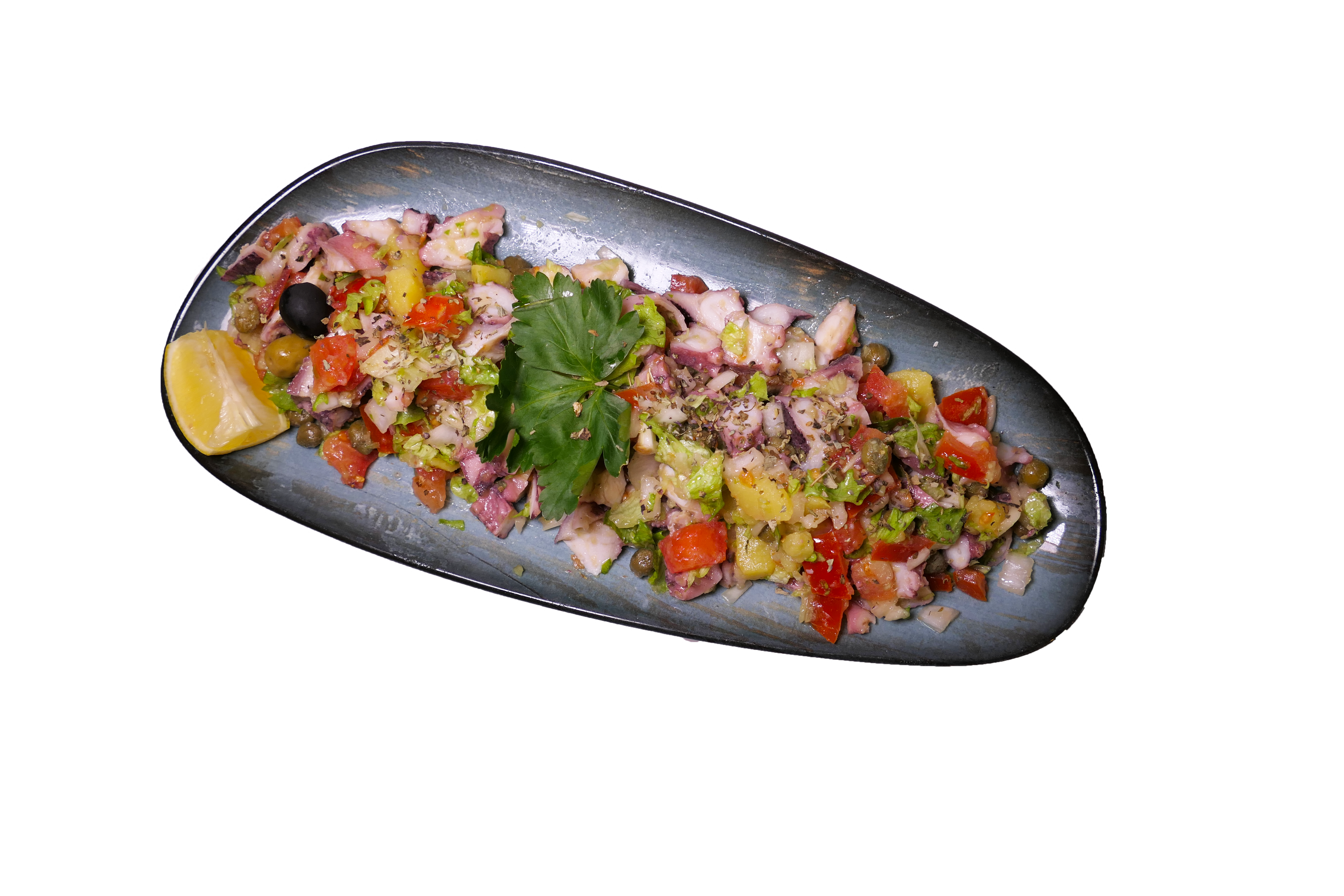 Zelena salata sa lignjama, krompirom, paradajzom i lukom
