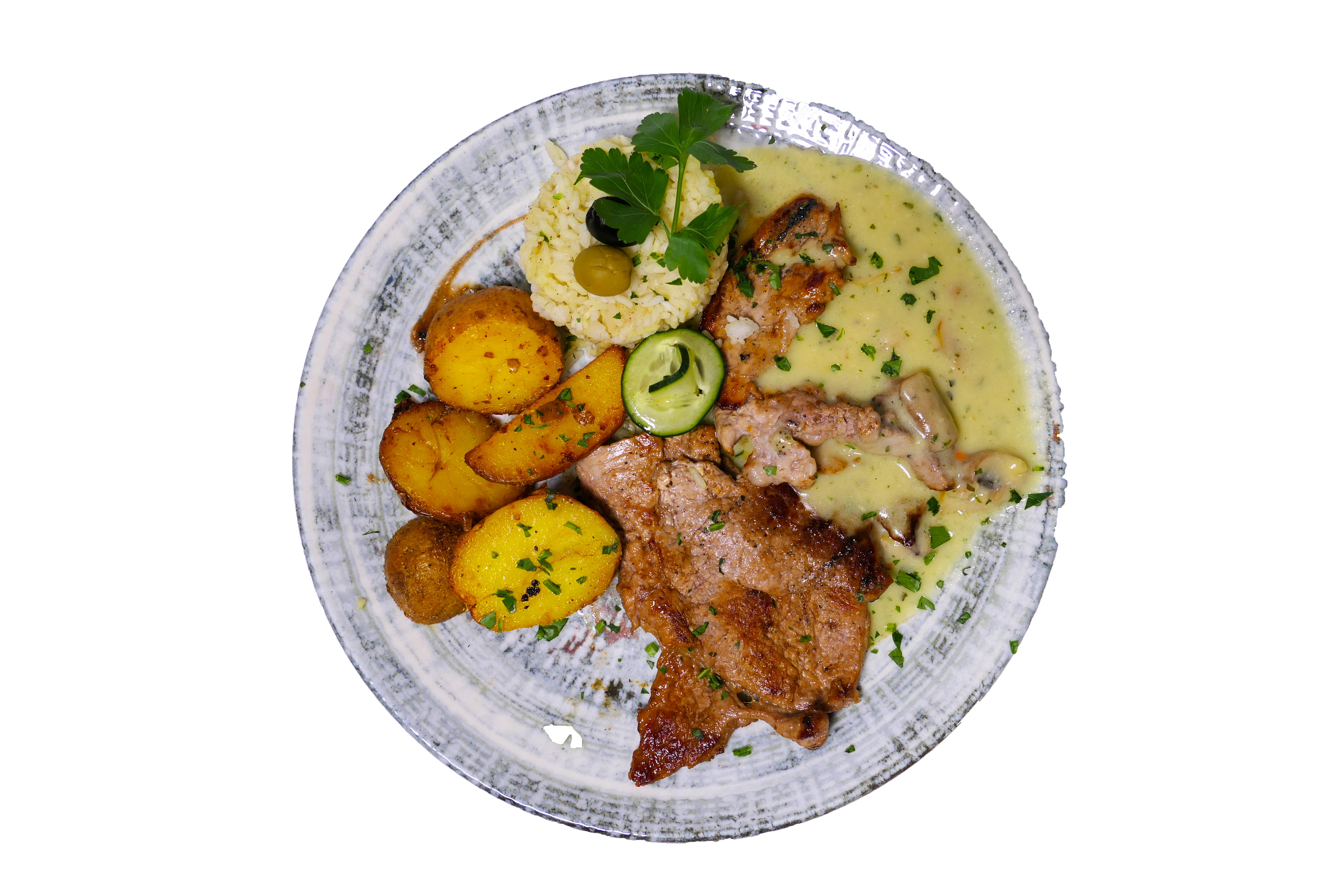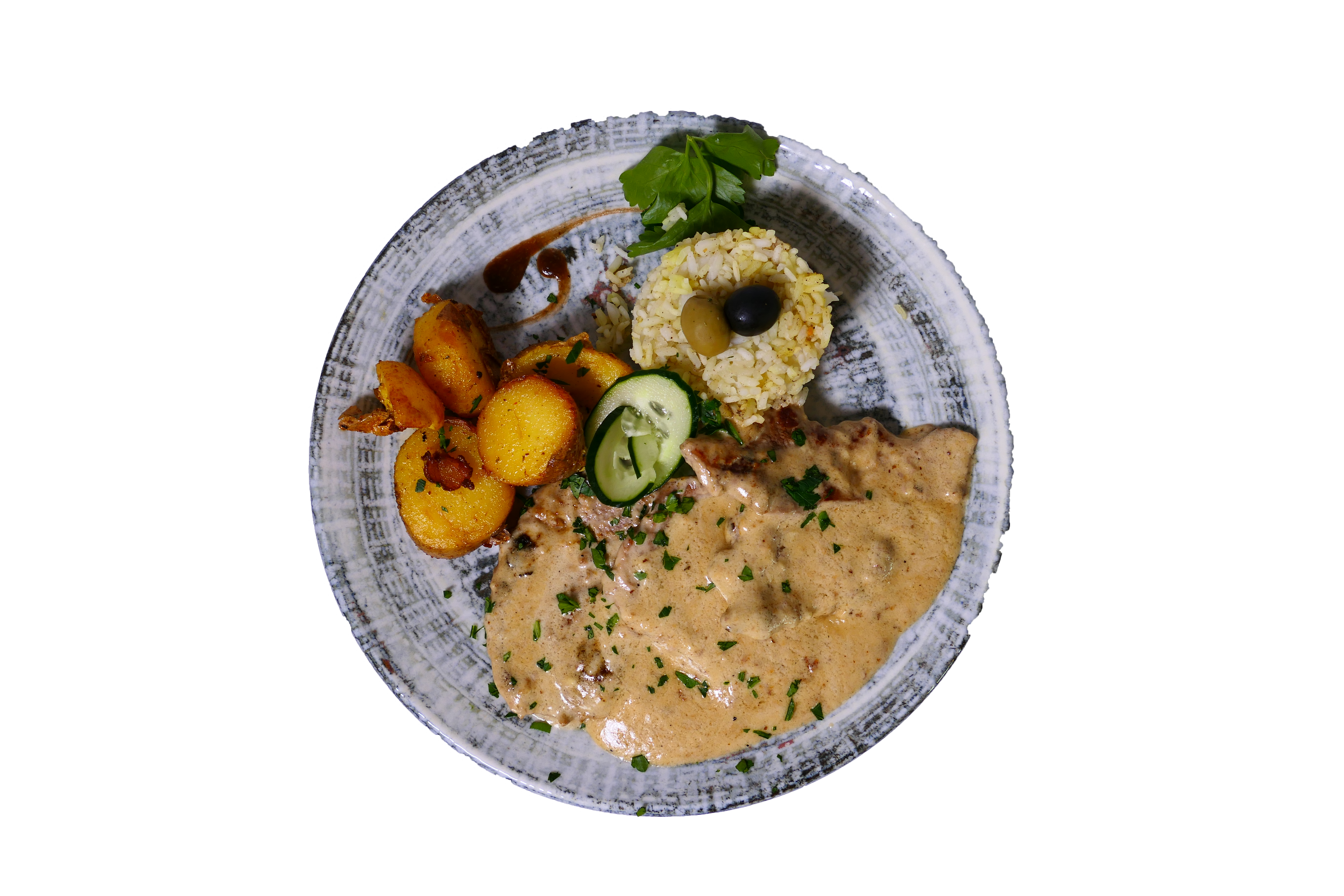 Teleće pečenje u krem sosu sa pekarskim krompirom
